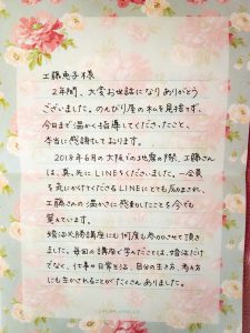 のんびり屋の私を見捨てず、今日まで温かく指導してくださったこと、本当に感謝しております。