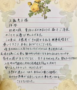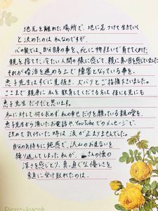 私に対して何も求めず、私の幸せだけを願っている親の愛を、恵子先生から頂いたお電話やYouTubeでのメッセージで、改めて気付いた時は涙が止まりませんでした。